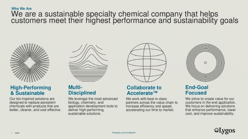 We built a bold new brand foundation — from visual identity to messaging — that helped distance Lygos from its biotech roots and repositioned it squarely in the world of sustainable specialty chemicals.